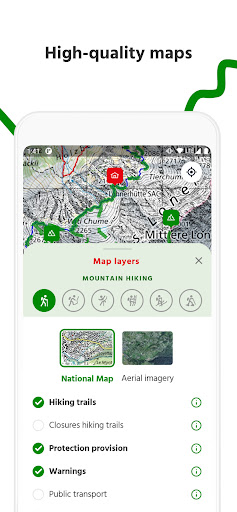 Keep your bearings even in remote terrain with the precision maps issued by swisstopo. Choose between maps and aerial images in scales between 1:10 000 and 1:1 million.