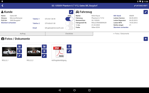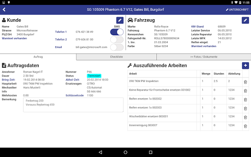 - Übernahme der Kunden-, Fahrzeug-, und Auftragsdaten aus Stieger DMS und Werkstattplaner per WLAN