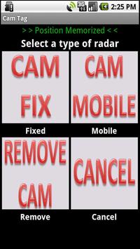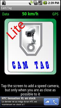 Note for developers: This application is built over the FoxyTag Android API, available for free at http://www.foxytag.com. Cam Tag is currently part of a set of 4 applications (Cam Tag, iRadars, SpotRadars and StopRadars) that differentiate themselves only by their UI and by the way the ads (lite versions) are presented to the user. A study of the download statistics will then be carried out in order to determine the most appropriate UI for a speed camera warning system.