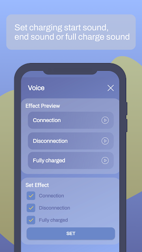 You don't necessarily need to set the charging connection effect or the charging disconnect sound, you can set the sound effect only for the full charging sound or vice versa.
