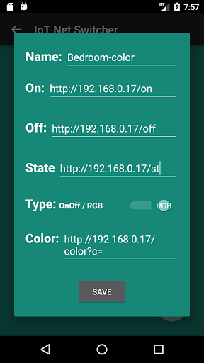 Small application for switching any device over your local network. The application can switch any IOT over the Internet too, but I must warn you that the https protocol is not implemented yet. Here is my arduino source code: https://github.com/gergelya1234/wifi-switch-esp8266