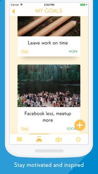 Es ist schwierig, motiviert zu bleiben, und erinnert daran, dass Sie inspiriert bleiben.Wischen Sie, um Gründe zu mögen und abzielen, und die App lernt, was Sie auf dem richtigen Weg halten