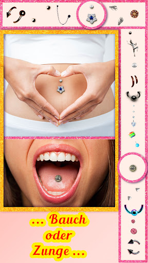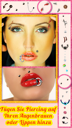 Piercing Bildbearbeitung ist ein perfektes Werkzeug mit dem Sie Ihre Bilder einfach zu bearbeiten und neue Körperschmucksachen ohne Schmerz oder Anstrengung ermöglicht. Holen Sie sich eine gesamte Kunststudio nur für sich selbst, probieren verschiedene Designs an bestimmten Orten auf Ihren Körper. Dieses einzigartige Bild-Stand wird Ohrringe, um Fotos hinzuzufügen leicht, so dass Sie ein realistisches Bild montage und Sie können Ihre Freunde sagen, dass Sie ein neues Körperschmuck bekommen haben!