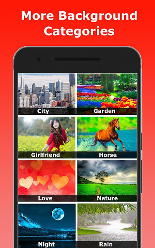 Andernfalls verwenden Sie das Ausschneiden des Schneidens-Werkzeugs zum Schneiden des selektiven Bildes auf einem schönen Hintergrund. Der Freundin-Foto-Editor verfügt über eine wunderbare Sammlung von 60 schönen Hintergrundfotos, die Sie mit Ihren Fotos einstellen und natürliche Wirkung erhalten, wie diese an natürlich an diesen Orten aufgenommen wurden.