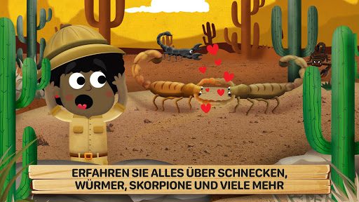 • Mit Dutzenden von Lernspielen: Erstelle dein eigenes Insekt; Insekten klassifizieren; lerne ihre Eigenschaften; finde Spinnen; grabe Löcher, um Würmern zu helfen.