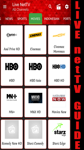 Also premium channels like HBO, Canal and more, everything in just one application called Guide Live NetTV Mobile.