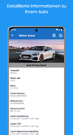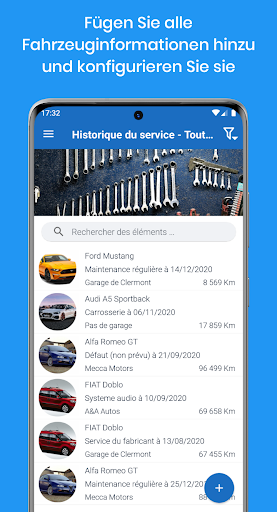 Zeichnen Sie Ihre Fahrzeugwartungshistorie auf, indem Sie alle Wartungs- und Reparaturarbeiten hinzufügen.