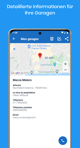 Fügen Sie Ihre bevorzugten Reparaturwerkstätten hinzu und speichern Sie sie in der App.