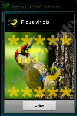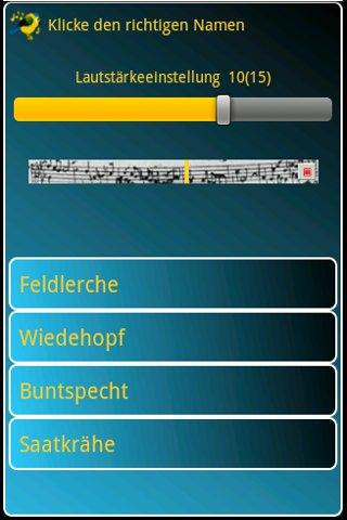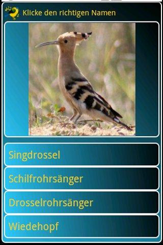 Von 33 verschiedenen Singvögeln müssen in jeder Runde 10 erkannt werden. Werden alle vom Zufall bestimmten Singvögel erkannt, dann erhält man 100 Punkte und hört den Vogelgesang des letzen richtig ausgewählten Vogel.