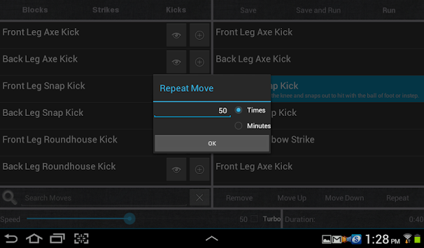 Total Control: TaeKwonDo puts you in control of your workout. You control all aspects of your workout while the app counts and / or calls each move you choose by name. Set your own pace and time for each workout. Create your own routine from over 100 different moves (paid version only) It’s like working out with a personal trainer.
