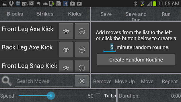 • Contains more than 100 moves that can be combined in thousands of different combinations. (requires paid version, free version has limited number of moves)