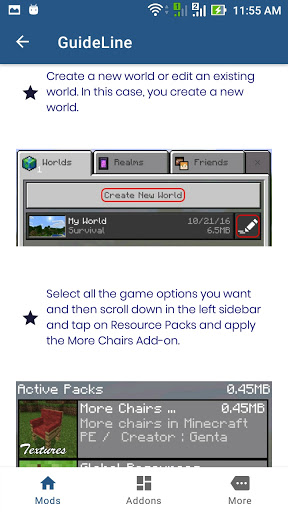 Addons: In unserem Anwendungs-Addons für Minecraft ist alles absolut kostenlos Wählen Sie einfach Ihre Lieblings-Adds für Minecraft aus und klicken Sie auf die Schaltfläche Öffnen, der Mod wird automatisch zu Ihrem Spiel hinzugefügt.
