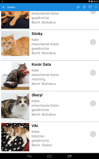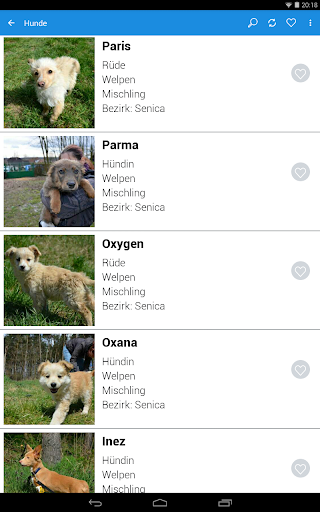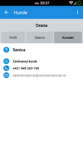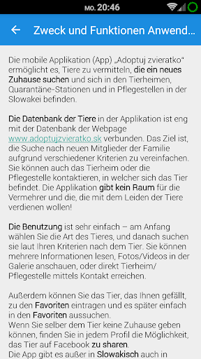Die Datenbank der Tiere in der Applikation ist eng mit der Datenbank der Webpage www.adoptujzvieratko.sk verbunden. Das Ziel ist, die Suche nach neuen Mitglieder der Familie aufgrund verschiedener Kriterien zu vereinfachen. Sie können auch das Tierheim oder die Pflegestelle kontaktieren, in welcher sich das Tier befindet. Die Applikation gibt kein Raum für die Vermehrer und die, die mit dem