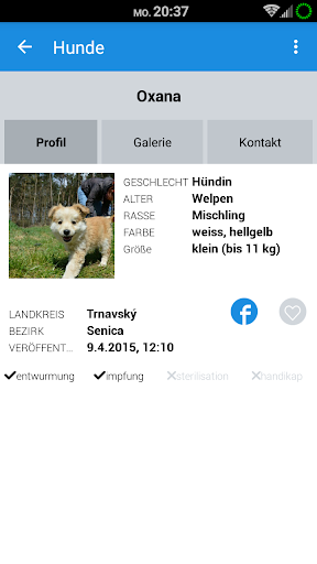 Die mobile Applikation (App) „Adoptuj zvieratko“ ermöglicht es, Tiere zu vermitteln, die ein neues Zuhause suchen und sich in den Tierheimen, Quarantäne-Stationen und in