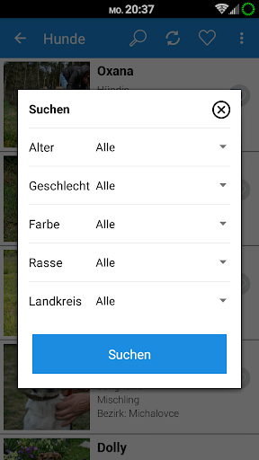 Die Benutzung ist sehr einfach – am Anfang wählen Sie die Art des Tieres, und danach suchen
