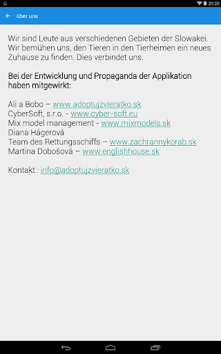 Diese App erwirtschaftet keinen Profit, sie ist kostenlos und darum wären wir froh, wenn Sie uns mit Propaganda helfen könnten. Die Flugblätter und mehr Informationen finden Sie bei www.adoptujzvieratko.sk. Wir wären glücklich, wenn Sie uns mittels Flugblätter bei