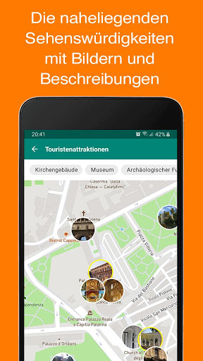 - Speicherung und Bearbeitung der ausgewählten Orten- GPS-Navigation für Autos und Fussgänger in der kostenpflichtigen Version