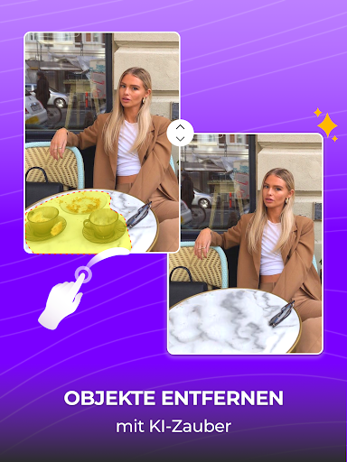 Entferne Objekte wie ein Profi mit unserer neuen Objektentfernungs-Funktion. Mit diesem intelligenten Werkzeug zum Entfernen von Objekten kannst du unerwünschte Elemente nahtlos aus deinen Fotos entfernen, sodass du saubere, störungsfreie Bilder erhältst.