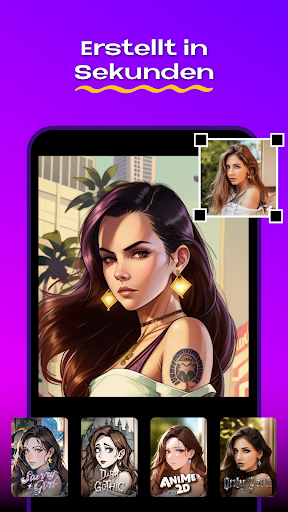 Erleben Sie unübertroffene Bildtransformationen mit unserer führenden KI-App. Tauchen Sie ein in eine Vielfalt fesselnder Anime-Stile und realistischer Visuals, perfekt, um persönlichen Porträts und Gruppenfotos eine einzigartige Note zu verleihen. Mit nur wenigen Klicks erwecken Sie Charaktere zum Leben und lassen Ihre Fotos mit Lebendigkeit erstrahlen. Erfassen Sie unvergessliche Momente und erschaffen Sie herzerwärmende Bilder, die Freunde und Familie näher zusammenbringen.
