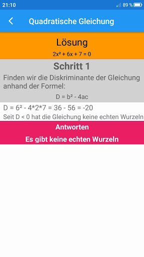 - Berechnung des Diskriminanten;