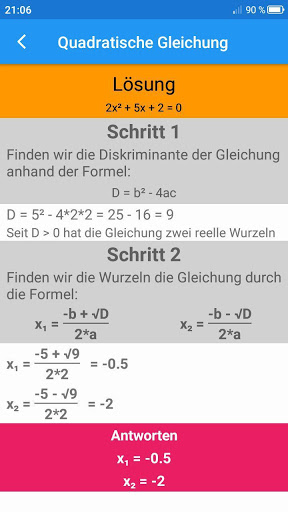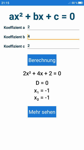 Quadratische Gleichung. Es hilft Ihnen, Wurzeln von quadratischen Gleichungen durch quadratische Formeln zu finden.