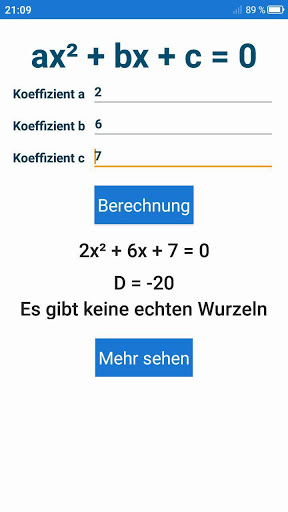 - Berechnung der Wurzeln der quadratischen Gleichung.