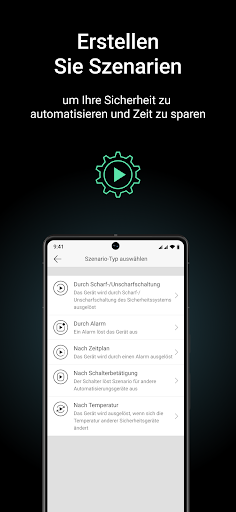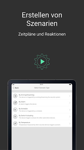 Ändern Sie die Sicherheitsmodi nach einem Zeitplan, programmieren Sie die Außenbeleuchtung so, dass sie sich einschaltet, wenn Ihr Grundstück betreten wird, oder realisieren Sie ein Überschwemmungsschutz-System. Steuern Sie Tore, elektrische Schlösser, Beleuchtung, Heizung und Elektrogeräte. In der App, automatisch nach Szenario oder durch Drücken eines intelligenten Knopfes.