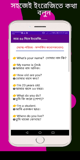দ্বিতীয়ভাগে বাংলা থেকে ইংরেজিতে কথা বলার অনুবাদ দেওয়া হয়েছে যা তে রয়েছে প্রতিদিন ইংলিশে কথা বলার বাক্য ।
