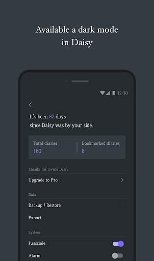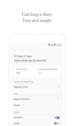 - Backup your diary and journal to Google drive.(photo backup is not available yet)