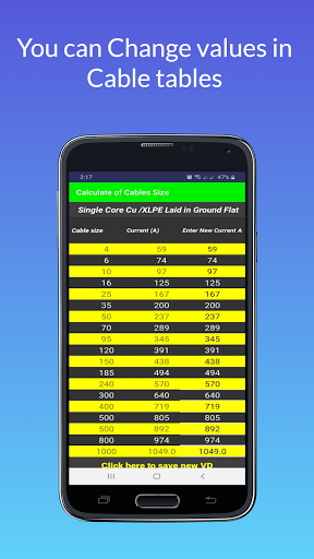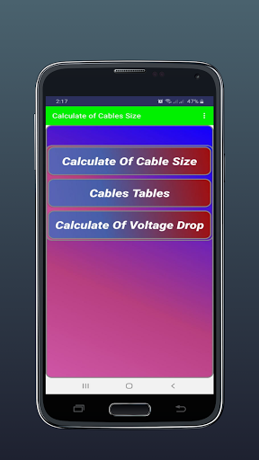 Diese Anwendung berechnet die Größe des Kabels basierend auf der elektrischen Last (elektrischer Strom).