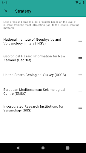 * Die Liste der Erdbeben verwendet eine Fusionstechnologie, mit der unterschiedliche Ereignisse im Streaming von den aktivierten Anbietern beobachtet werden können und die Kontrolle über die Kontrolledie Zusammenführungsstrategie.