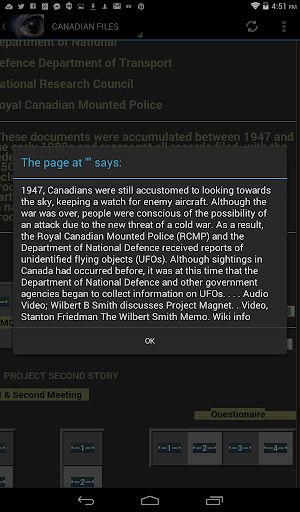 The app is designed to aid in seeking the truth behind government conspiracies by sorting through existing files and records.