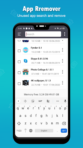 Uninstaller bietet Features wie mehrerer Selektion von Apps, Such-App für die Deinstallation, Showspeicher anzeigen von Apps, Zugriff auf Apps direkt von App-Entferner.