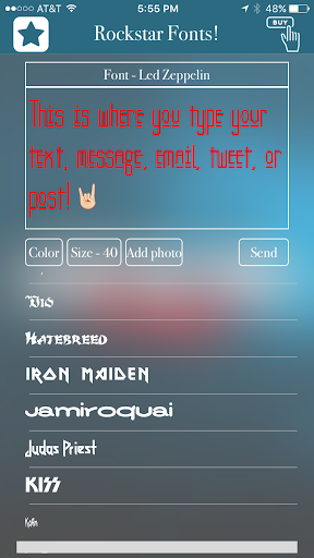 Rockstar-Schriftarten! Hat die besten und coolsten Heavy Metal-Schriftarten für Googleplay. Über 50 Fonts von Ihren Favoriten von 80er-Bands bis hin zu zeitgenössischen Rockstars. Jetzt können Sie Ihren Fotos Text hinzufügen und mit Ihren Freunden und sozialen Medien teilen. Rockstar-Schriftarten sind auch mit SMS, Facebook, Twitter, WhatsApp und E-Mail kompatibel.