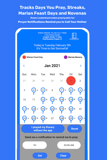 - Rosary-Gebetbenachrichtigungen in Ihrem persönlichen Kalender speichern Und es kann schwer sein, sich daran zu erinnern, sich Zeit für das Gebet aus Ihrem Tag zu nehmen. Um Ihnen zu helfen, sich daran zu erinnern, dass wir in App-Benachrichtigungsnachrichten-Erinnerungen haben, die Ihnen dabei helfen können, die Zeit in Ihrem täglichen Leben zum Gebet zu halten.