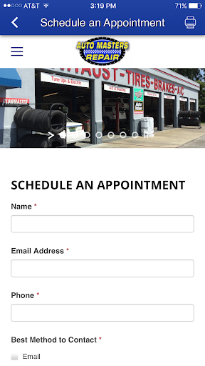 Auto Masters Repair mobile app features will allow app users to contact us, view services, receive updates and much more!