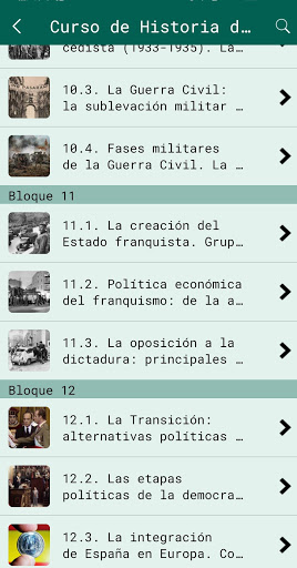 Academia Play, die größte Geschichte der größten Geschichte der Welt, bringt Ihnen diese Anwendung der Geschichte Spaniens. Perfekt, um das Wissen zu ermitteln oder das Thema der Geschichte in Evau (Selektivität) durch 47 Videos, 47 Podcast, Notizen und Tipps zur Erstellung einer Prüfung zu genehmigen. In der Tat folgt unsere Anwendung Punkt, indem sie die Epigraphen auf den Zugangstest an die Universität eingeben.