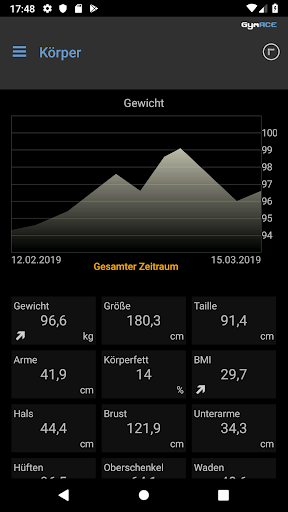 • Detaillierte Fitness- und Körperstatistik mit vordefinierten und eigenen Datenfeldern