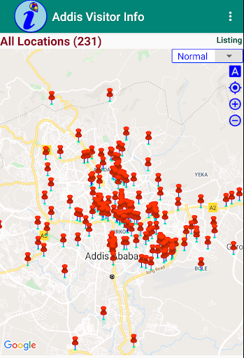 Visitor Info Addis Ababa App can be used to locate specific location in