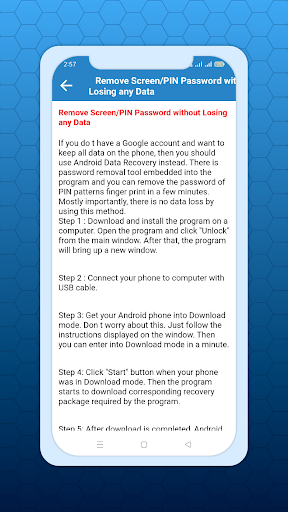 Jeder muss Daten sichern oder die unberechtigte Verwendung seiner Daten verhindern. Eine Methode zum Schutz Ihrer Telefondaten besteht darin, Ihren Telefonbildschirm mit Muster, Pin oder auf andere Weise wie die Gesichtserkennung zu sperren. Diese App sorgt für eine Lösung für Probleme der Geräte der Geräte oder Entriegelung.