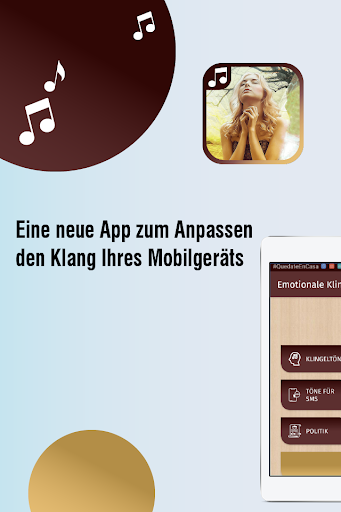 Jetzt im Play Store zum Download und zum Genießen, die neue app emotionale klingeltöne kostenlos, um Ihr Telefon zu genießen und zu personalisieren. Diese klingeltöne app enthält eine Vielzahl von töne kostenlos.