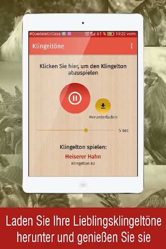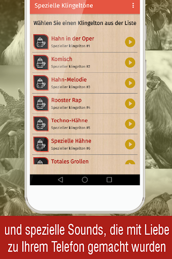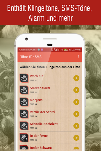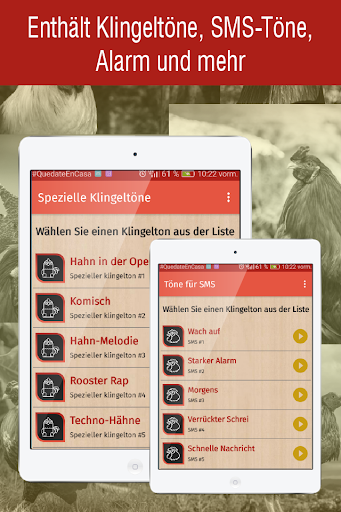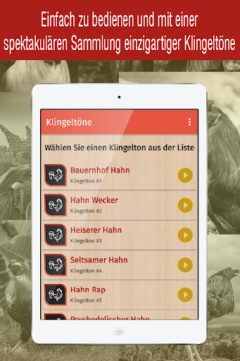 klingeltöne hahnenschrei ist eine App, die für Ihr Handy entwickelt wurde und eine große Sammlung von Klingeltönen enthält, die Sie verwenden können: Klingeltöne, SMS-Töne, Alarm oder Benachrichtigung.