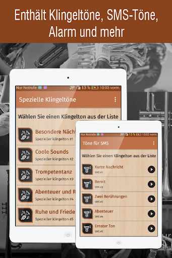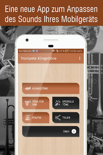 Vergessen Sie nicht, dass Sie eine Internetverbindung benötigen, um die trompete töne app richtig nutzen zu können und auf den Download aller kostenlosen Klingeltöne für Ihr Handy zugreifen zu können.