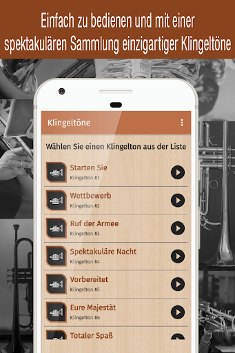 trompeten klingeltöne ist eine App, die speziell für Ihr Handy entwickelt wurde und eine große Sammlung von Klingeltönen enthält, die Sie verwenden können: Klingeltöne, SMS-Töne, Alarm oder Benachrichtigung.