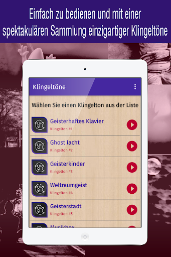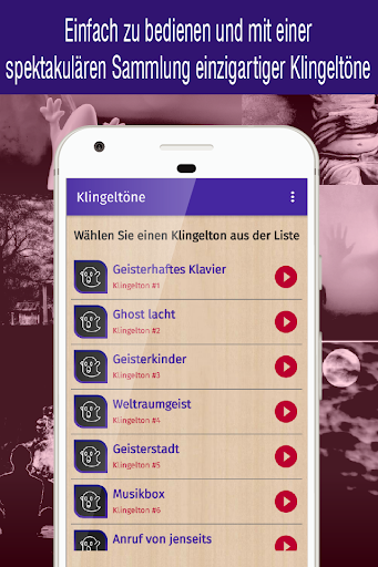 Suchen Sie nach neuen Klingeltönen für Ihr Mobilgerät? Laden Sie die neue geister klingeltöne app herunter und personalisieren Sie den Sound Ihres Geräts, indem Sie aus der Vielzahl der verfügbaren kostenlosen Telefonsounds den Sound auswählen, der Ihnen am besten gefällt.