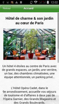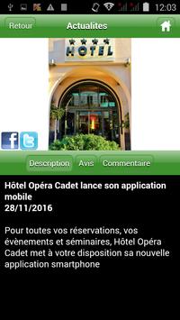L'application "Hôtel Opéra Cadet" vous offre la possibilité de consulter toutes les infos utiles de l'hôtel (Tarifs, services, avis…) mais aussi de recevoir leurs dernières News ou Flyers sous forme de notifications Push.