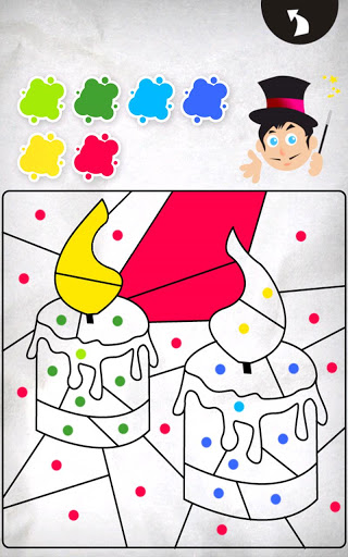 Ein Zaubermittel hilft dabei, die aktuelle Seite mit den richtigen Farben auszumalen.