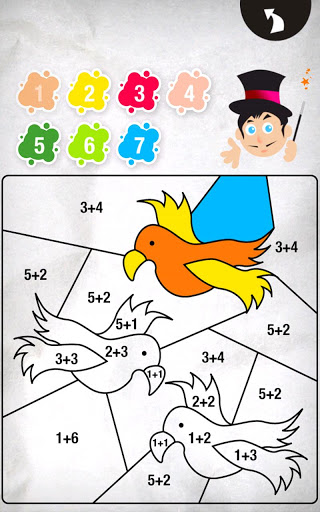 Jede Farbe wurde einer Zahl zugeordnet. Ihr Kind muss die Zahl der richtigen Farbe zuordnen, um das Bild bunt auszumalen zu können.