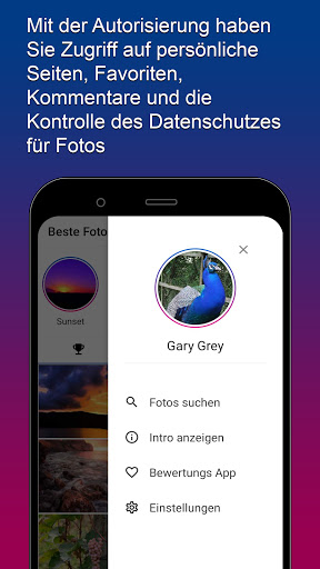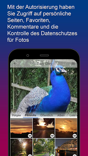 Flickr Droid unterstützt 2 Betriebsarten mit und ohne Berechtigung. Nach dem Anmelden erhalten Sie Zugriff auf Ihre persönliche Seite, können Lieblingsfotos hinzufügen, Kommentare senden und die Privatsphäre Ihrer Fotos kontrollieren.