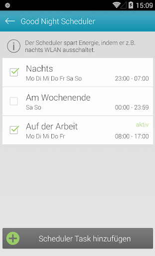 So sorgen Sie z.B. dafür, dass Ihr Smartphone automatisch Wi-Fi- und Mobilfunk-Verbindungen zu Ihrer gewohnten Schlafenszeit deaktiviert um Strom zu sparen, und die Funktionen morgens automatisch reaktiviert. So sparen Sie Nachts wertvolle Energie und sind dennoch nach dem Aufstehen sofort wieder erreichbar.